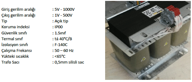 3 Faz izole trafolar endüstriyel amaçlı kullanılan cihazların daha sağlıklı çalıştırılması gayesi ile kullanılırlar. 3x380/3x380 3x380/3x220 şeklinde genel sarımlara sahip olanlar izolasyon amacı taşıyan trafo lardır. Şebekede bulunan manyetik gürültülerin, hassas olan endüstriyel cihazlara yansımasını önler. Aynı şekilde non-lineer yapıya sahip cihazların yaratacağı elektriksel kirliliğin şebekeye yansıtılması da önlenmiş olur. Düşürücü tip trafolar da 3x380/3x12 3x380/3x24 3x380/3x110V olarak genel kullanım biçimlerine sahiptir. Bu tip trafo lar düşük ac gerilimli endüstriyel makine ya da motorların çalıştırılmasında kullanılır.