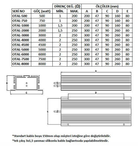 * 1,5mm yanmaz kabloludur.